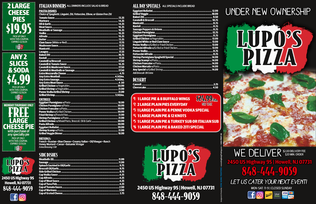 Welcome to Lupos Pizza, a family-owned gem located at 2450 US-9 in Howell Township, NJ. This pizzeria stands out with its commitment to quality ingredients and traditional methods. Each dish is crafted with care, from the aged pizza dough to the house-made hero bread, ensuring a memorable dining experience.